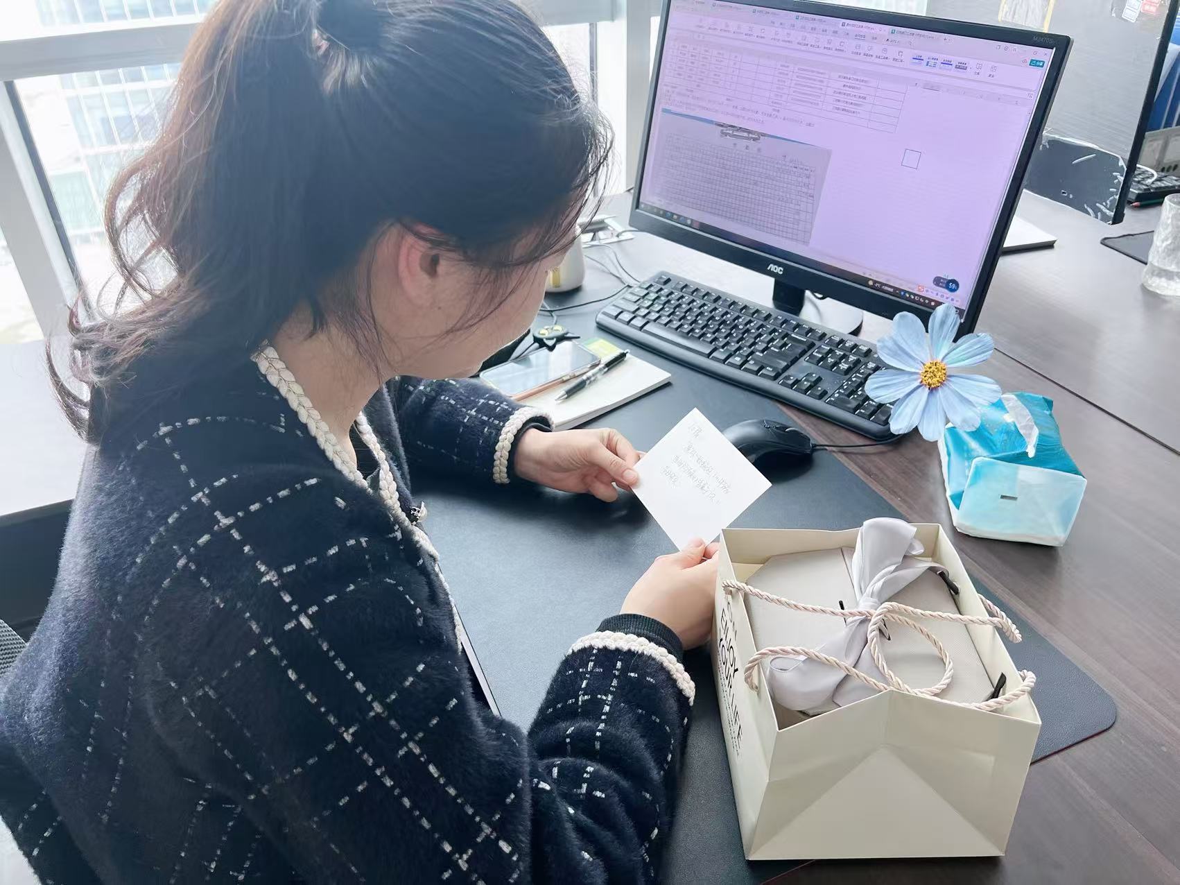 集團總部精心準備了節(jié)日禮盒,每一份都蘊含著公司對“她”力量的認可與贊美,禮盒內(nèi)滿載著實用的物品與溫馨的祝福,辦公室里因此增添了幾分喜悅的氣息。